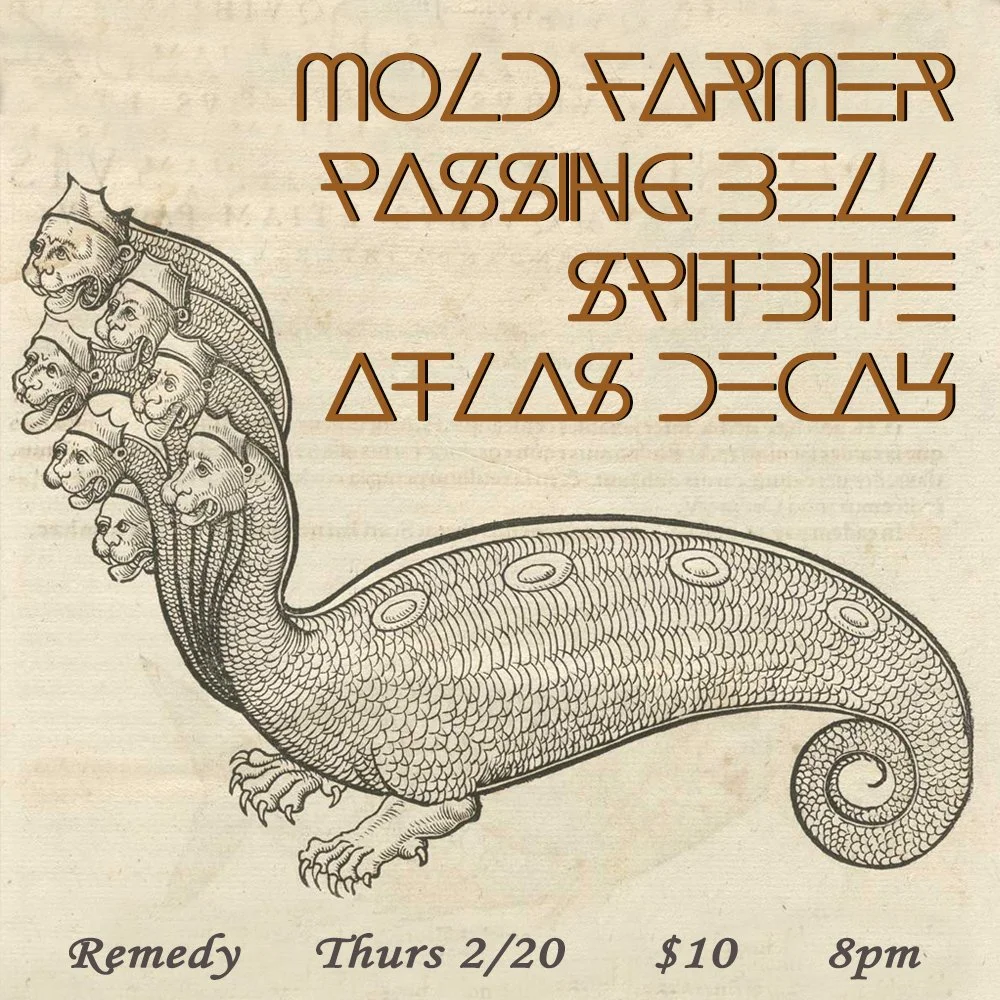 Mold Farmer, Passing Bell (debut show, w/members of Funerals & The Long Hunt), Spitbite, Atlas Decay [SLUDGE/NOISE ROCK]