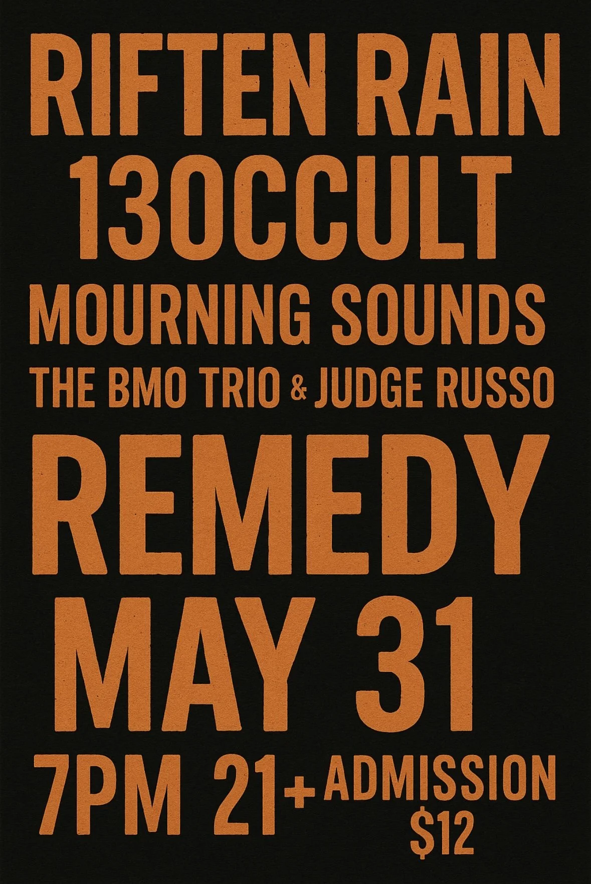RIFTEN RAIN, 13OCCULT, MOURNING SOUNDS, THE BMO TRIO, JUDGE RUSSO [ALT ROCK]
